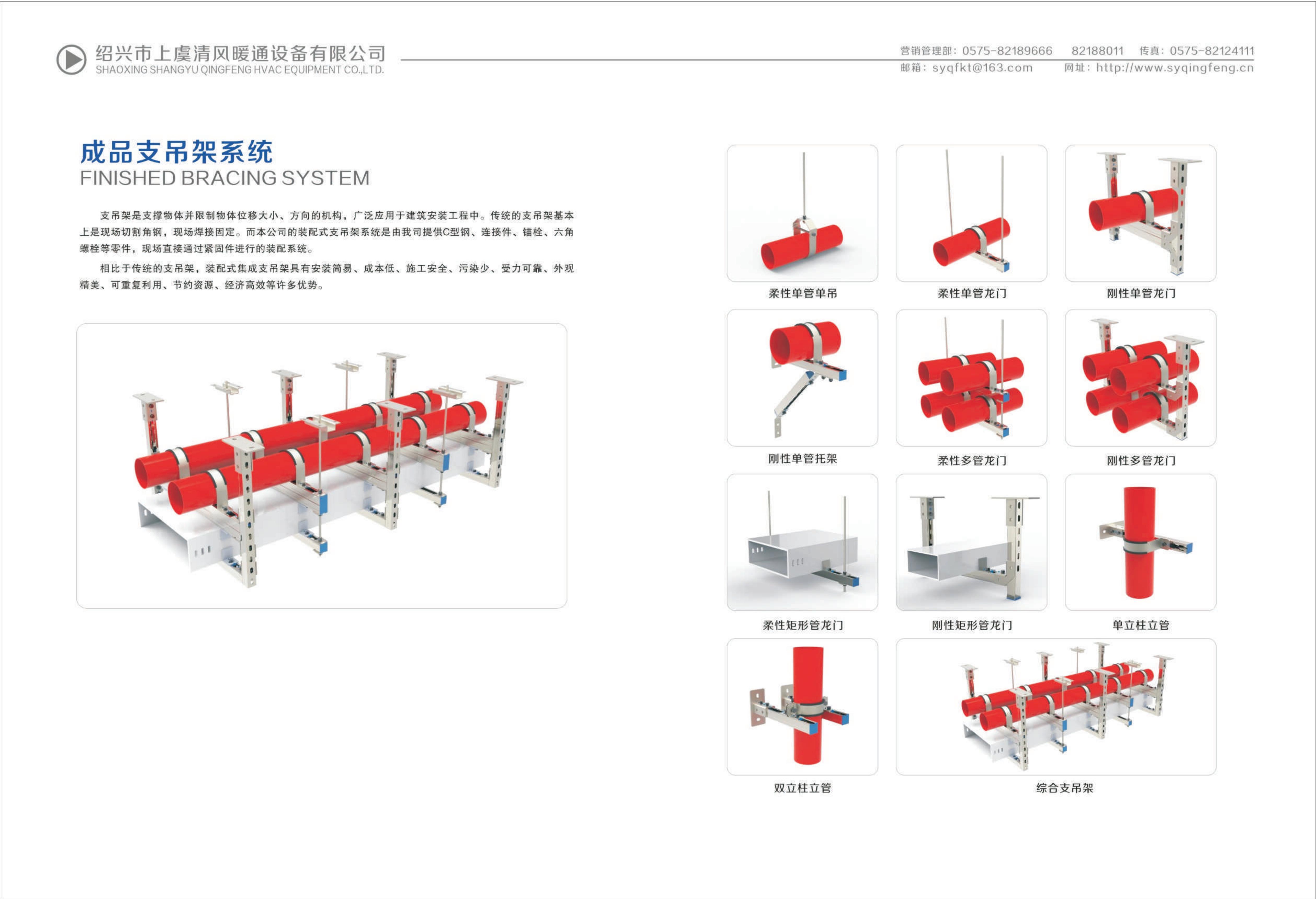 支吊架是支撐物體并限制物體和位移大小、方向的機(jī)構(gòu),廣泛應(yīng)用于建筑安裝工程中。傳統(tǒng)的支吊架基本 上是現(xiàn)場(chǎng)切割角鋼,現(xiàn)場(chǎng)焊接固定。而本公司的裝配式支吊架系統(tǒng)是由我司提供C型鋼、連接件、錨栓、六角 螺栓等零件,現(xiàn)場(chǎng)直接通過(guò)緊固件進(jìn)行的裝配系統(tǒng)。 相比于傳統(tǒng)的支吊架,裝配式集成支吊架具有安裝簡(jiǎn)易、成本低、施工安全、污染少、受力可靠、外觀 精美、可重復(fù)利用、節(jié)約資源、經(jīng)濟(jì)高效等許多優(yōu)勢(shì)。